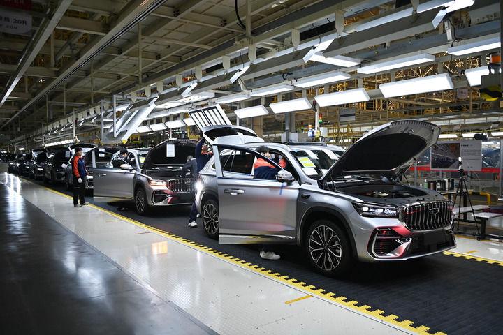 来到浙江吉利控股集团设在西安的整车生产基地,基于强大的数字平台和智能化设备,这里可实现24小时不间断“黑灯生产”,不同设备、机器人之间自主协调运作、灵活响应,冲压、焊接、喷涂自动化率均达到100%。