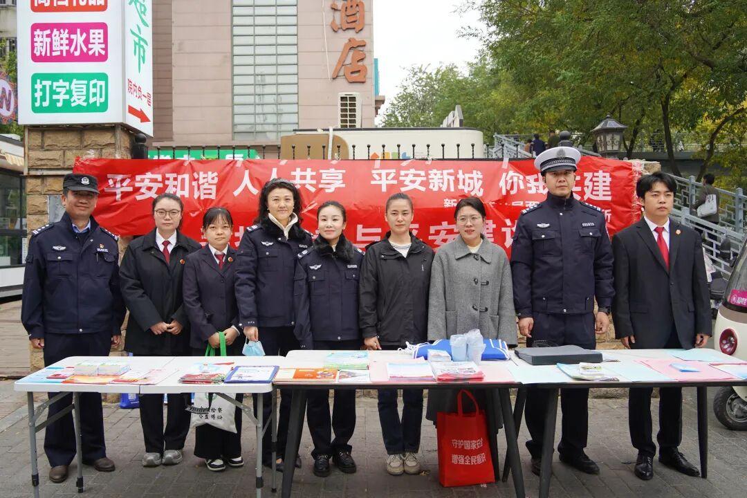 11月6日上午,西安市新城区司法局西一路司法所联合新城区人民检察院、新城区人民法院、公安新城分局、交管新城大队及西一路街道平安法治办,在皇城西路路口东广场开展平安建设主题宣传活动。