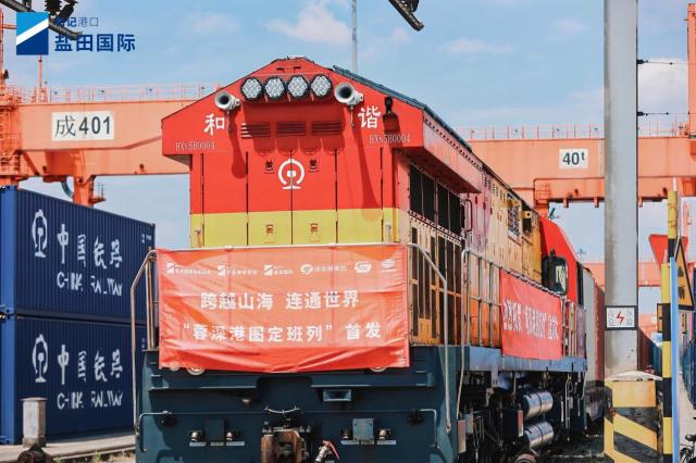 携手开拓新兴市场——汽笛嘹亮,首趟“蓉深港图定班列”经深圳盐田港中转至香港葵青港,换装上国际班轮发往世界各地。香港发挥国际金融中心作用,为共建“一带一路”项目提供金融“活水”。