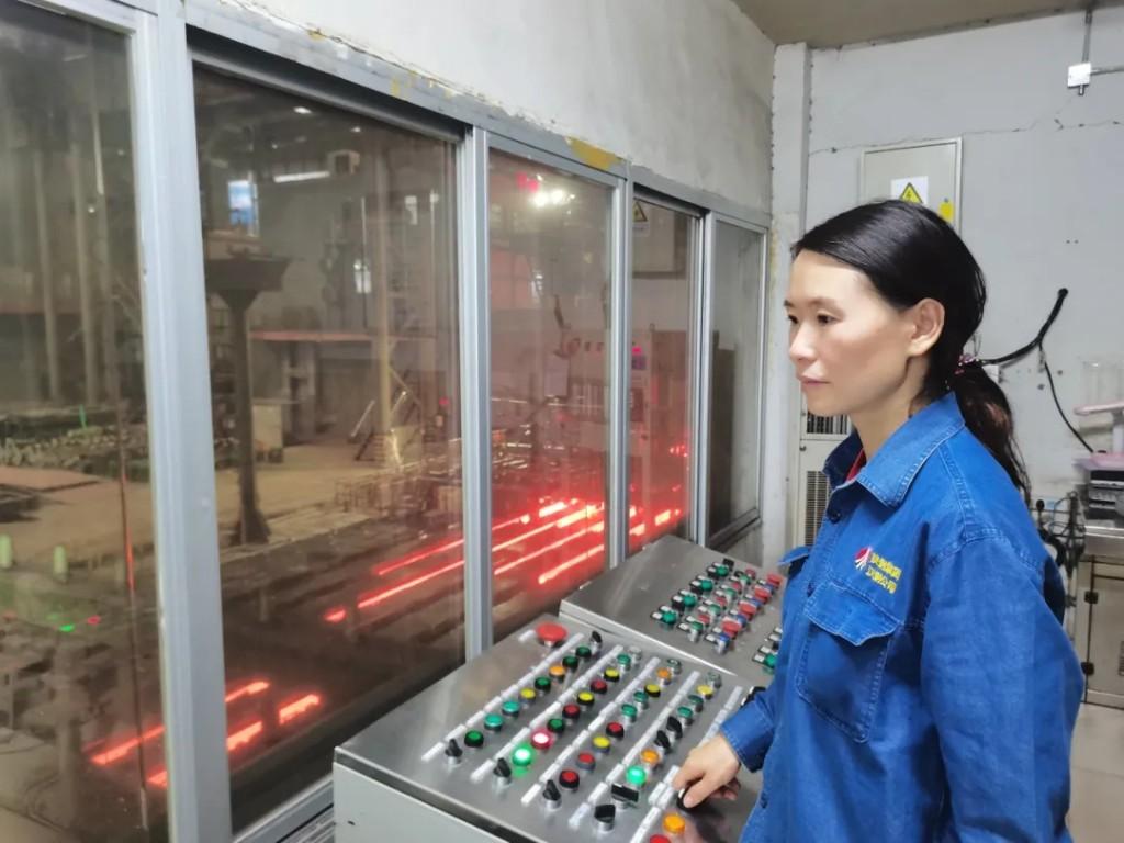 在汉钢公司炼钢厂推钢室操作台上,李飞的十指仿佛舞动的精灵,在一排排眼花缭乱的操作按钮上快速飞舞,升降挡板、推钢机点动、钢坯热送等动作一气呵成。火红的钢坯有多少度,她对推钢工作就有多少热度。面对需要长时间站立、精神高度集中且枯燥烦琐的工作,她从未有过一丝敷衍。每班工作伊始,她都会一丝不苟地检查设备灵活性、钢坯垛位摆放及热送状态。班中她则目光如炬地紧盯辊道上钢坯的输送情况,根据切割节奏精准操作挡板,确保每一根钢坯都整齐有序地进入冷床。进入本岗位以来,她已准确完成分炉、分支分流操作超过三万炉次。当被问及十多年来操作零事故、零失误的秘诀时,她总是谦逊地笑着道:“没有什么秘诀,细心一点,剩下的就是熟能生巧了。”同时,她还通过“师带徒”把自身十几年的经验和本领倾囊相授,培养出多名推钢业务骨干。