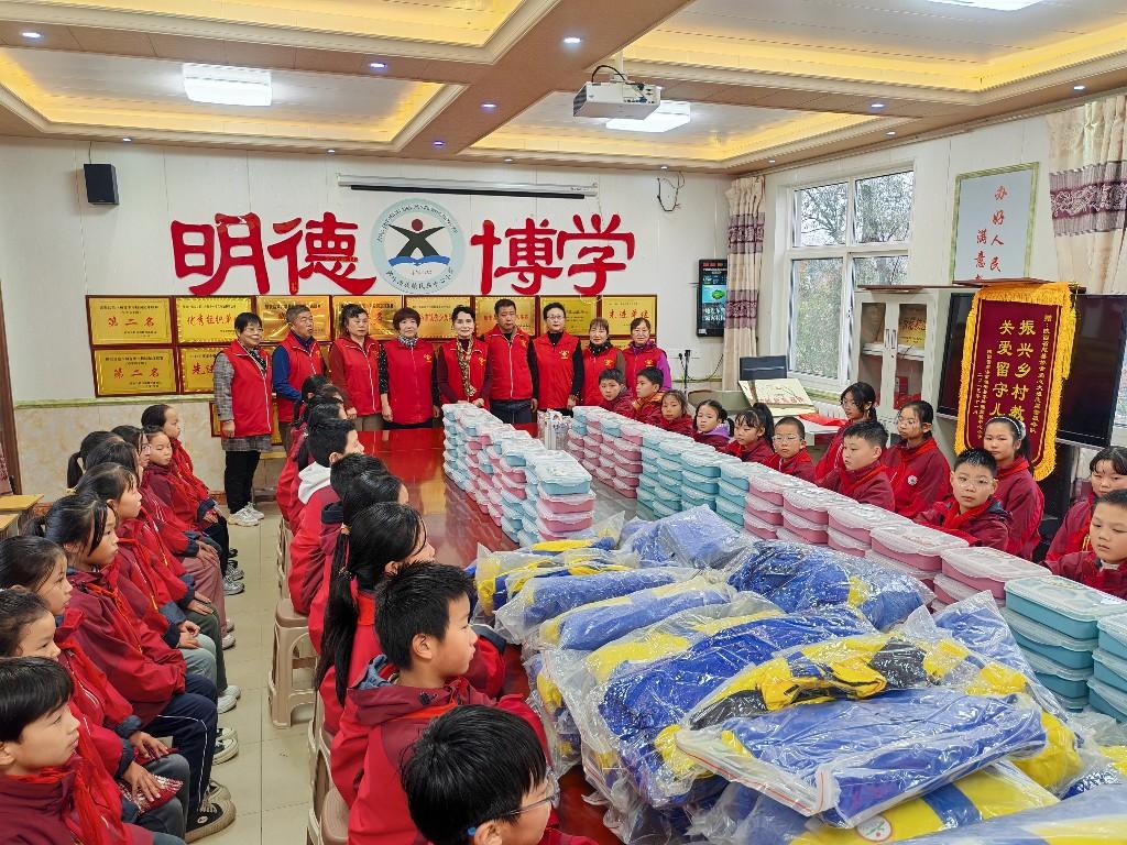 在简朴而温馨的捐赠仪式上,每位学生都收到了崭新的防寒棉衣、实用饭盒、保温水杯、彩笔、经典课外读物及全套学习用品。此外,团队还为四年级和六年级各1名特别困难的学生分别发放了500元助学金。
