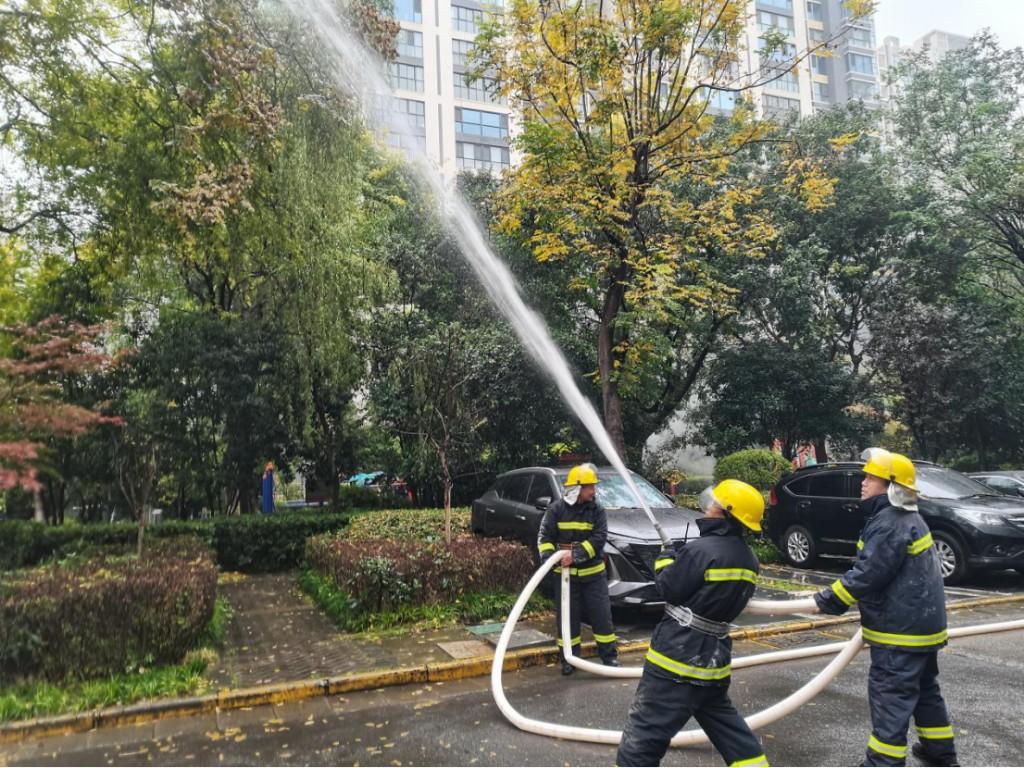 整个演练构建了一套完整而逼真的应急响应闭环。从物业消控室接到火情警报,到巡逻人员迅速前往排查确认;从居民在模拟烟雾中低姿捂鼻、有序撤离,到“消防人员”接驳水带、精准压制“火点”;再到“医护人员”现场对“伤员”进行紧急救护……全流程、多角色的协同演练,不仅让居民亲身体验了如何自救逃生,更全景式呈现了社区在火情发生后的全链条应急响应机制。居民们不再是安全知识的被动接收者,而是化身为应急场景中的“当事人”,在高度仿真的环境中,直观感受危机,也真切理解到:社区安全,是一张由多方力量共同织就的防护网。
