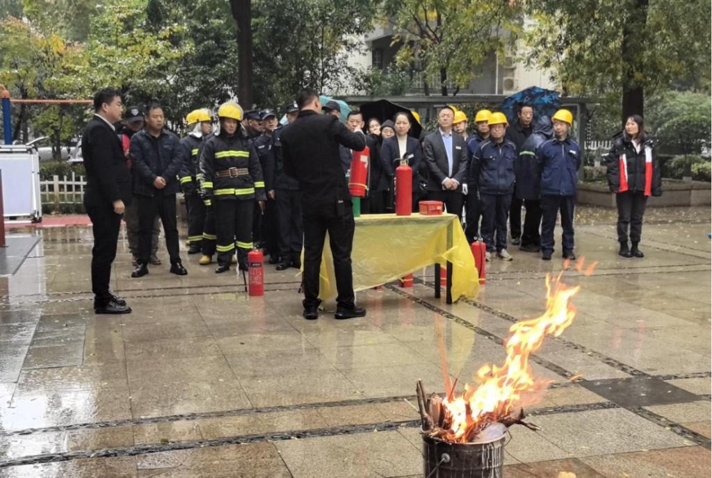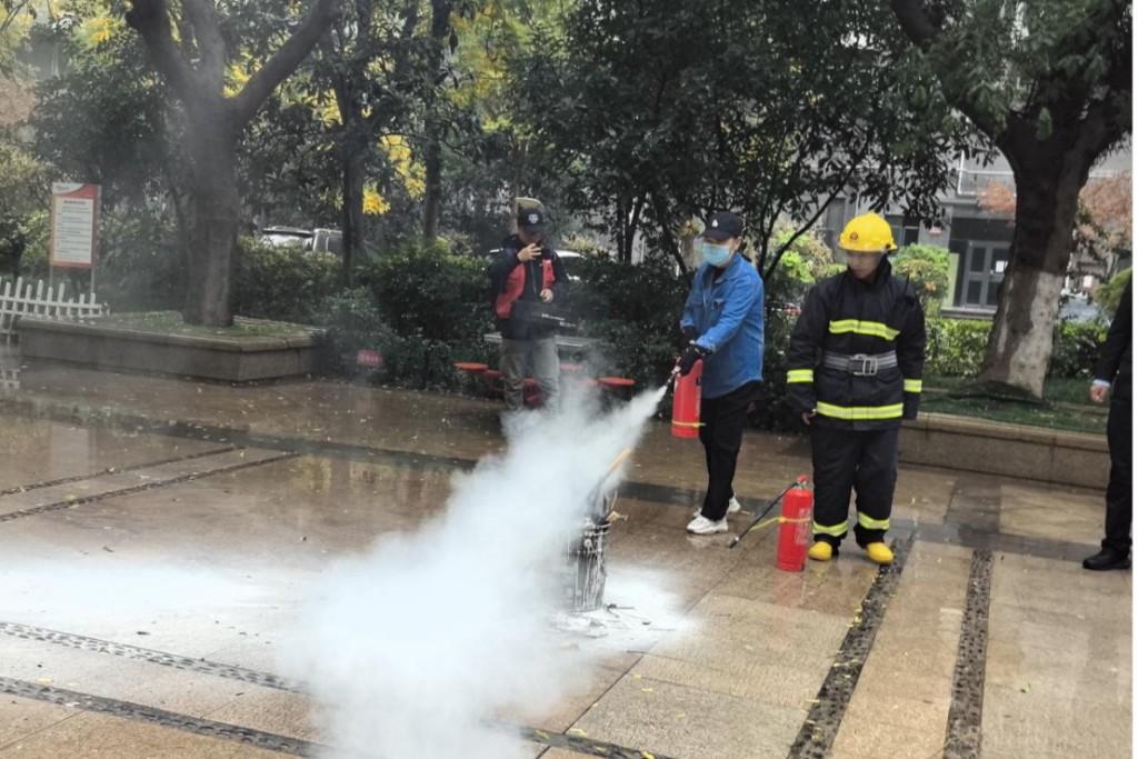 除了惊心动魄的逃生体验,活动现场还设置了灭火器实操培训环节。物业消防专员面对面、手把手地指导居民及工作人员,“提、拔、握、压”每一个步骤都反复练习,确保大家在关键时刻能冷静、正确地使用灭火器,真正具备扑救初期火灾的能力。