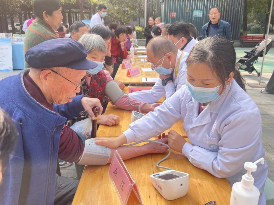 在基础健康检测区,免费血压、血糖测量服务吸引大量中老年居民参与。医护人员一边测量一边记录数据,对异常结果及时提醒并给予初步指导。
