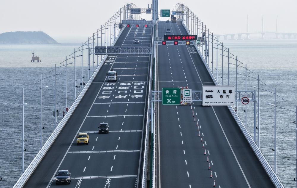 车辆在港珠澳大桥上驶过(10月19日摄,无人机照片)。新华社记者 邓华 摄