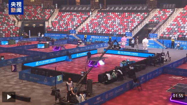 总台记者 刘冰清:这里是澳门的银河综艺馆,是十五运会澳门赛区的主要比赛场馆之一,乒乓球项目的所有奖牌都将在这里产生,这里也是澳门最大的室内综艺馆,可以容纳约16000名观众,可以看到目前场馆已经整装待发迎接比赛。
