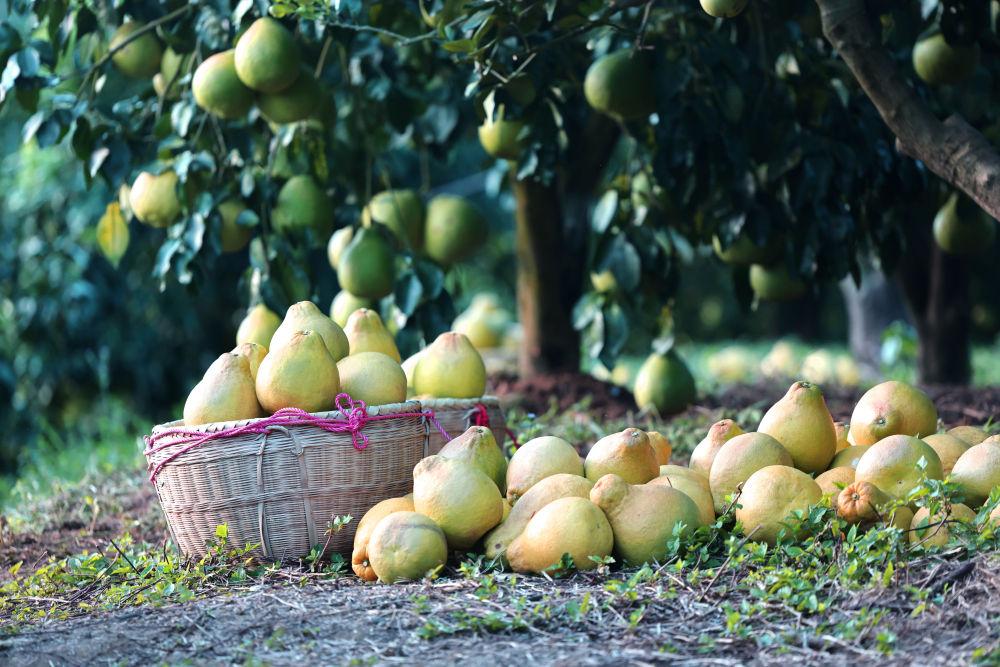 2025年11月7日在梅州南福金柚种植基地拍摄的金柚及相关产品。