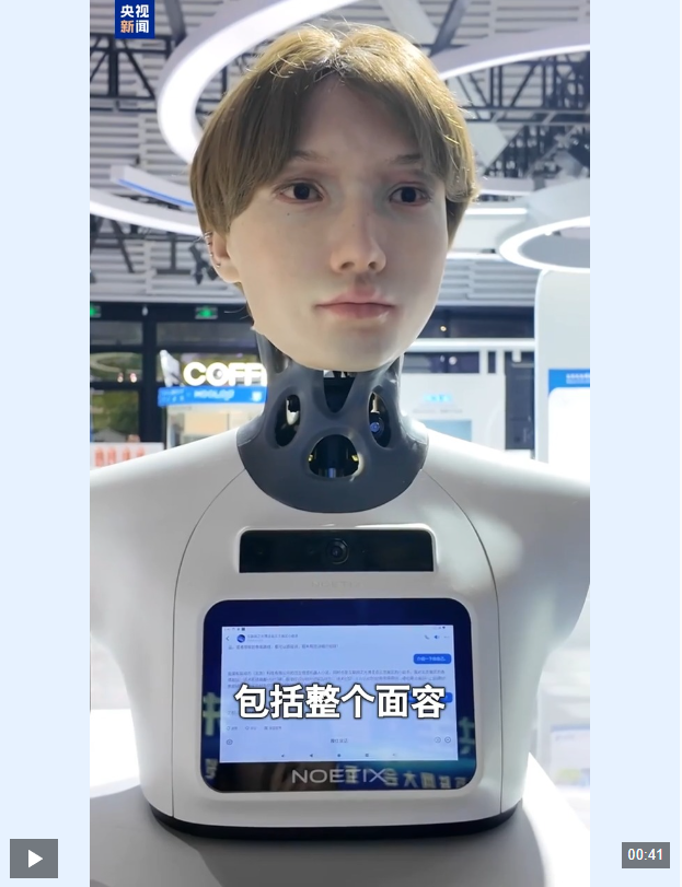 遇见“社牛”机器人!这款仿生情感机器人能实时复刻你的喜怒哀乐,表情同步率100%,互动对话情商高。未来,它将走进我们的生活,应用于智能导览、陪伴、康养等领域。