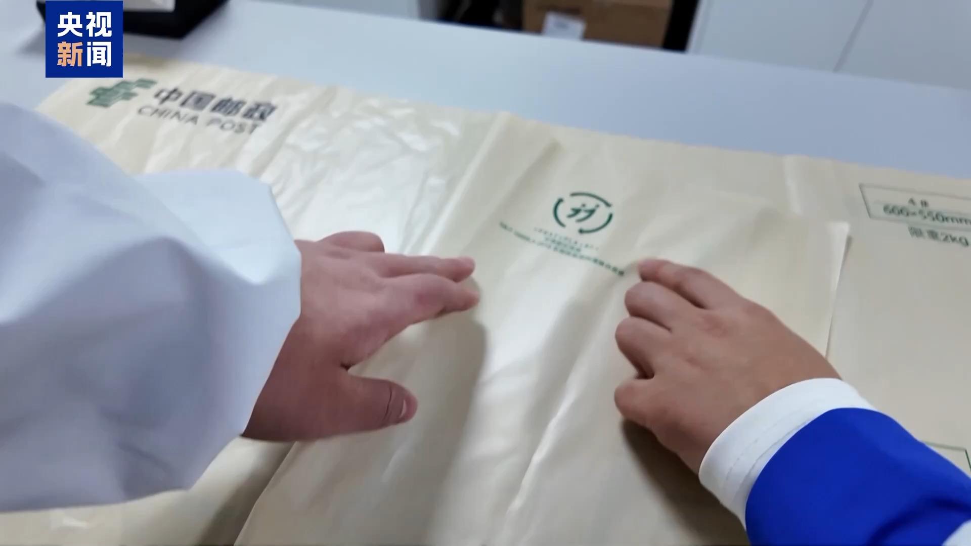 再来说说以产量丰富、可降解的竹子为原料的竹膜袋,成本也比传统塑料快递袋降低了15%。这款袋子在今年九月开始在北京、海南的邮政网点试用了上万个,已初步验证产品性能。