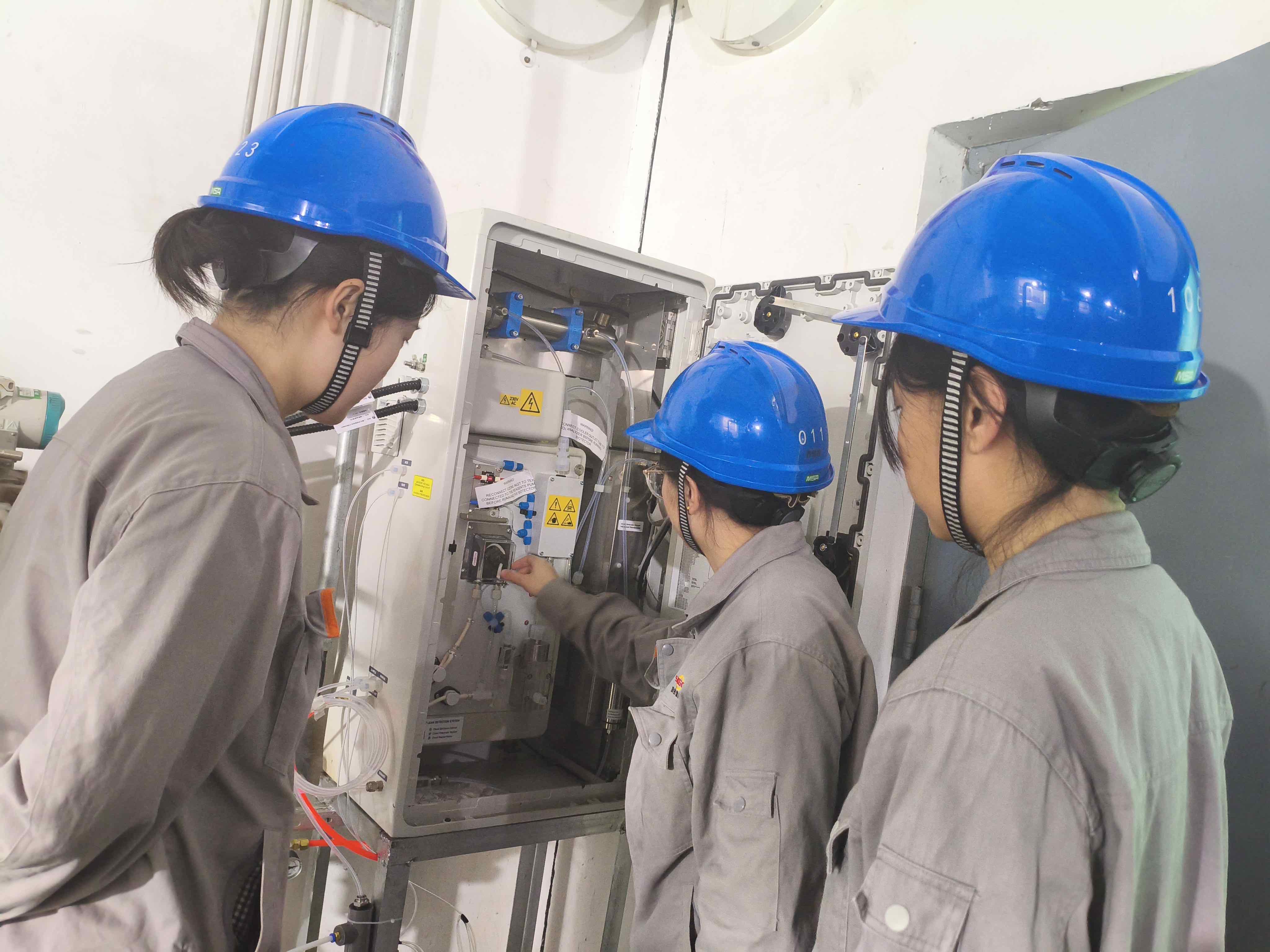 二期化学车间里,热工检修班的女工们专注进行TOC分析仪调试。“这个测点偏差0.1%都会影响机组经济运行。”乔珍珍轻轻调试着校准旋钮,如同呵护婴儿。作为机组水汽系统的“感知神经”,TOC分析仪的精准测量对保障机组安全运行至关重要。她们通过精心校准和优化参数,确保监测数据准确可靠,为化学监督系统提供精准诊断。