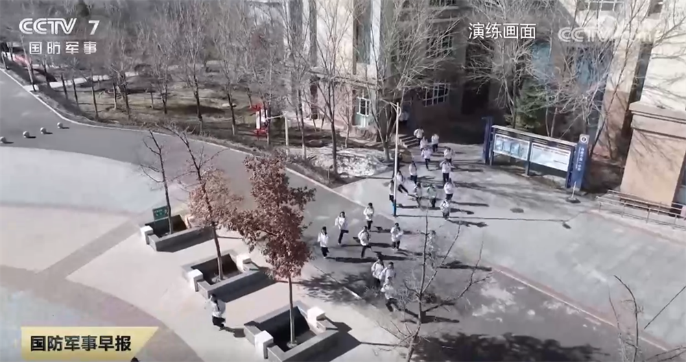 在新疆阜康,新疆军区某团官兵走进驻地中学,开展消防救援演练。同学们在老师和官兵的引导下,沿着预定的逃生路线有序撤离教学楼。