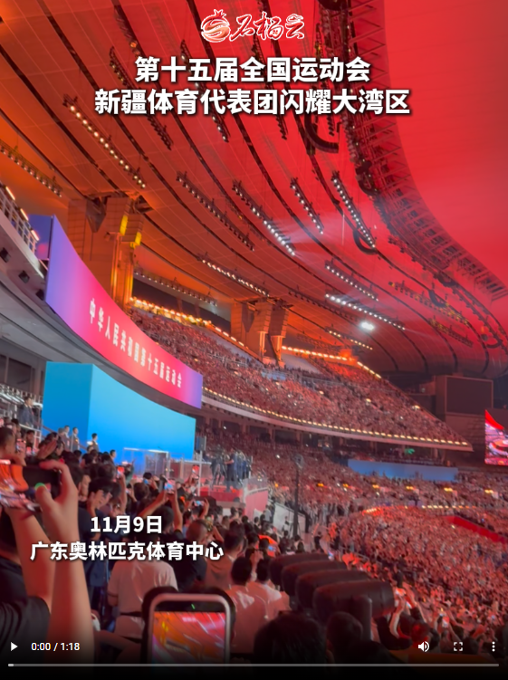 11月9日,第十五届全国运动会在广东奥林匹克体育中心盛大开幕。本届全运会首次由广东、香港、澳门共同跨境举办。新疆体育代表团在开幕式上闪亮登场,拳击名将麦麦提图尔孙·琼担任旗手引领队伍亮相。此次新疆共有252名运动员晋级决赛,接下来他们将在摔跤、马术、田径等多个项目中奋勇拼搏。