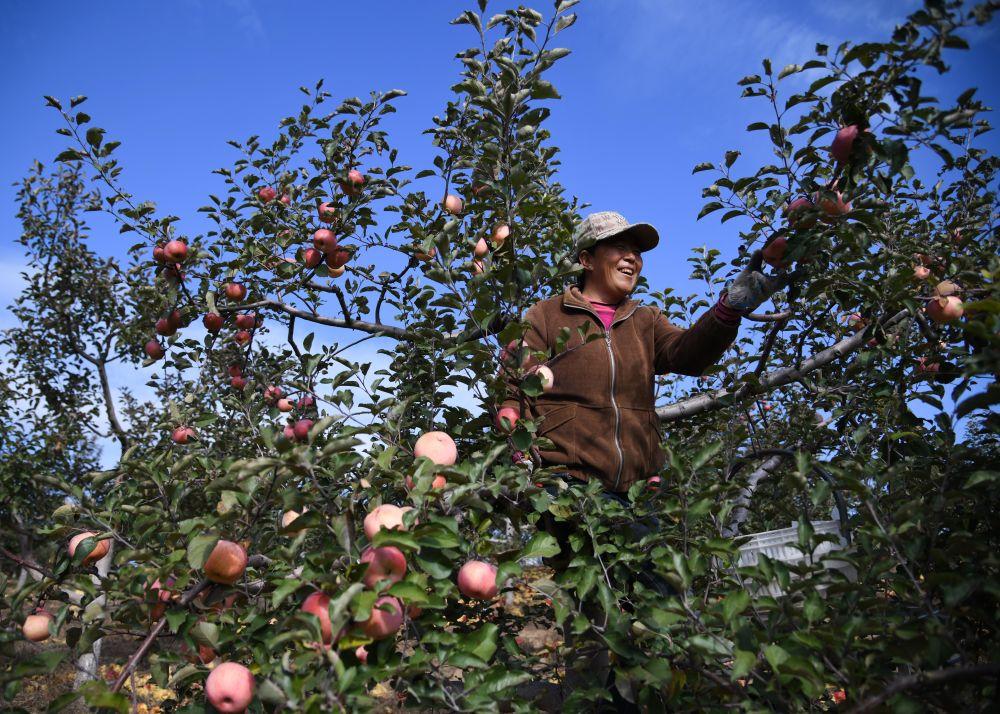 红彤彤的苹果压弯树枝,果农穿梭林间,忙着摘果、剪柄、装筐。记者近日在陕西省榆林市横山区看到,位于毛乌素沙地南缘的山峁迎来苹果采摘季,昔日“荒沙梁”如今成了“花果山”。