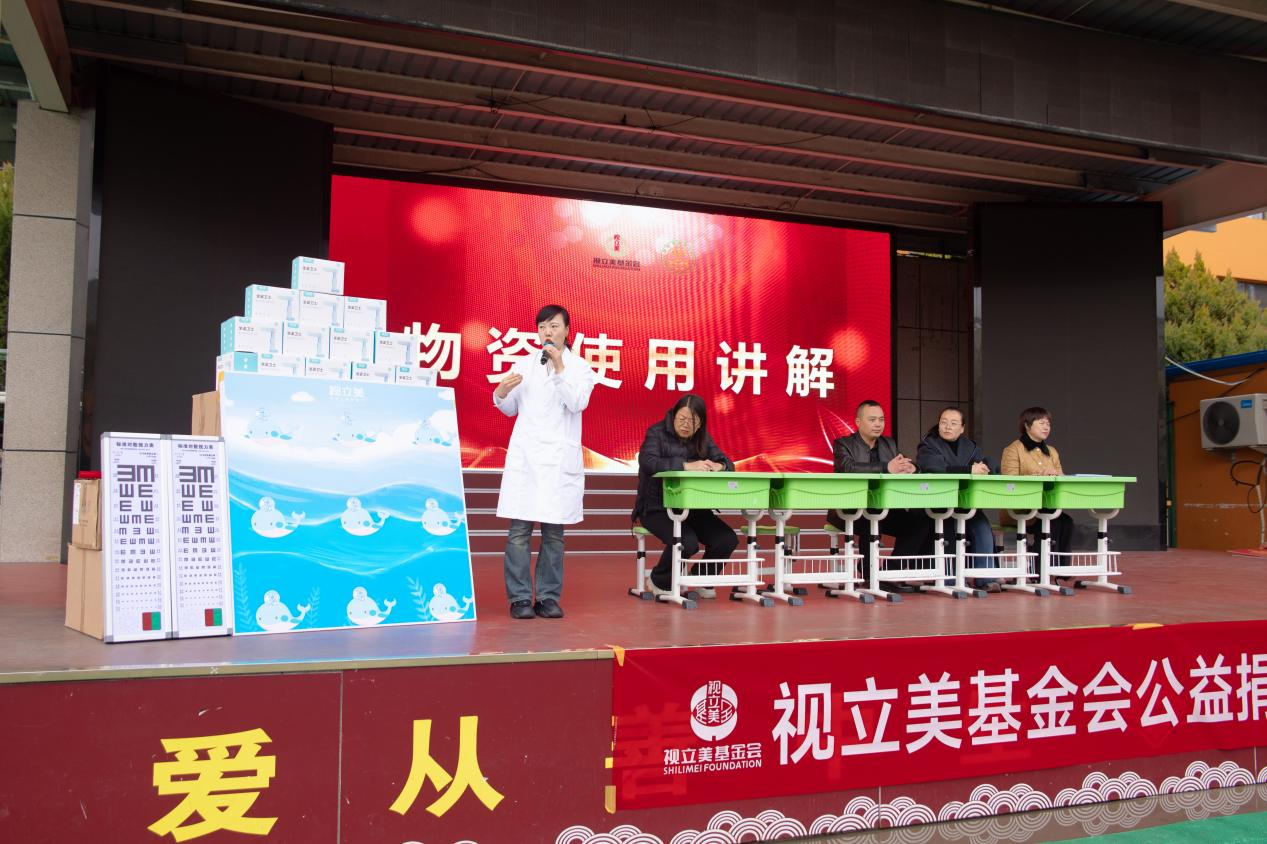 紧接着,西安市视立美助学基金会代表李伟登上演讲台:“守护青少年视力健康任重道远,不能仅凭单一力量的‘孤军奋战’,更需要公益组织、爱心企业与学校之间理念的契合与责任的共鸣。我们希望以此次活动为契机,共同构建完整的视力防护体系,希望捐赠出的物资,可以守护小朋友光明的未来”。