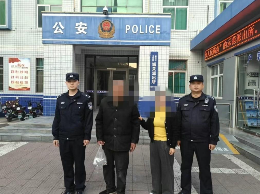 同日,城关派出所也上演了温情救助群众的感人一幕。先是接到报警,辖区火石咀加油站附近有位老人独自徘徊、疑似迷路。值班民警迅速到场,安抚好老人的情绪后尝试沟通,却因老人记忆模糊无果。民警随即兵分两路:一路走访周边商户居民,排查老人活动轨迹;另一路通过系统查询比对数据。一小时后,成功联系上老人家属,让心急如焚的家属在派出所见到了安然无恙的老人。