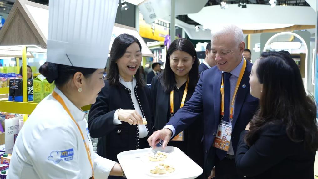 同为“全勤生”的纽仕兰今年带来了来自新西兰的更多新伙伴。感受到进博这一开放平台和中国大市场的巨大引力,今年有26家新西兰企业、29个品牌在纽仕兰展台组团亮相,进一步扩大了进博“朋友圈”。