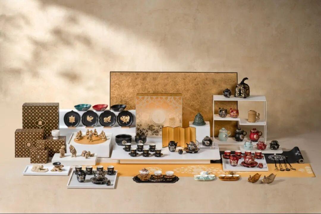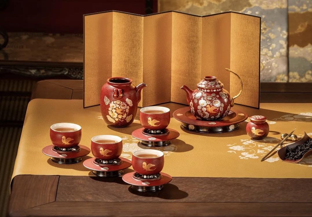本次大赛中荣获金奖的“大唐茶宴”系列茶具以陕历博馆藏何家村窖藏为核心灵感,由陕历博文创联合茶器品牌“万仟堂”共同打造,既有成套茶器,也有方便携带的快客杯、典雅大气的办公杯等文创产品。设计萃取鎏金鹦鹉纹提梁银罐、鸳鸯莲瓣纹金碗、鎏金银盘等文物中的纹饰精华,既延续了唐代艺术的雍容气度,又传承了传统纹样的吉祥寓意。通过白金及黄金花纸工艺等现代手法,复刻文物原有的璀璨质感与华丽格调,让千年唐韵在当代茶席中焕活新生。