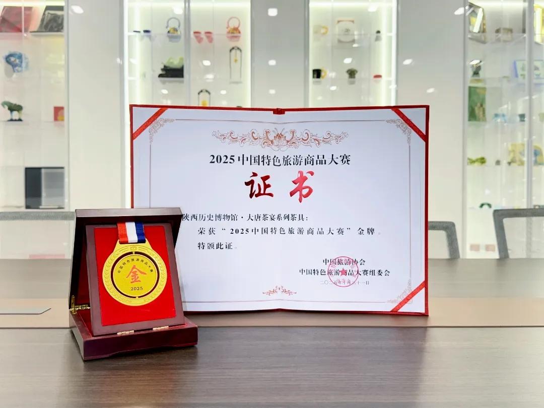 三秦都市报-三秦网讯(记者 赵争耀)11月10日,记者从陕西历史博物馆获悉,在“2025中国特色旅游商品大赛”上,该馆选送的“大唐茶宴”系列茶具与“飞凰腾达”咖啡杯,凭借独特的设计理念与深厚的文化内涵,分别斩获金奖与铜奖。