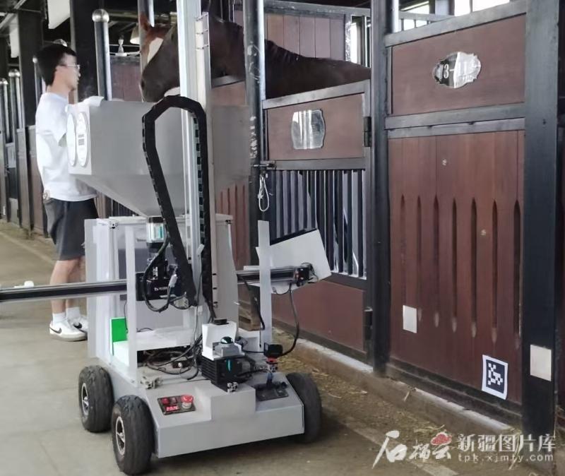 图为测试中,运动马精准饲喂机器人正在工作。杜雪梅 摄