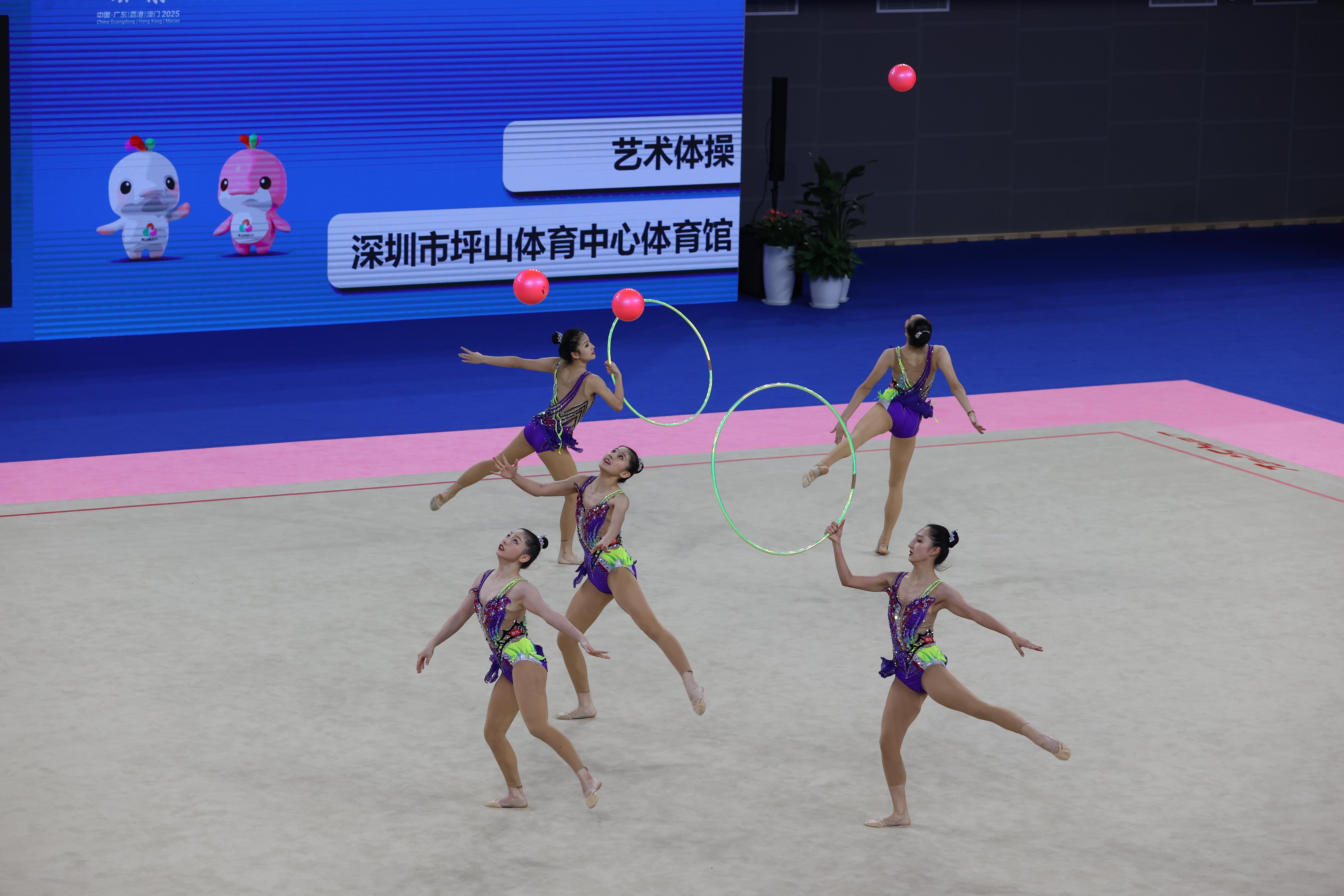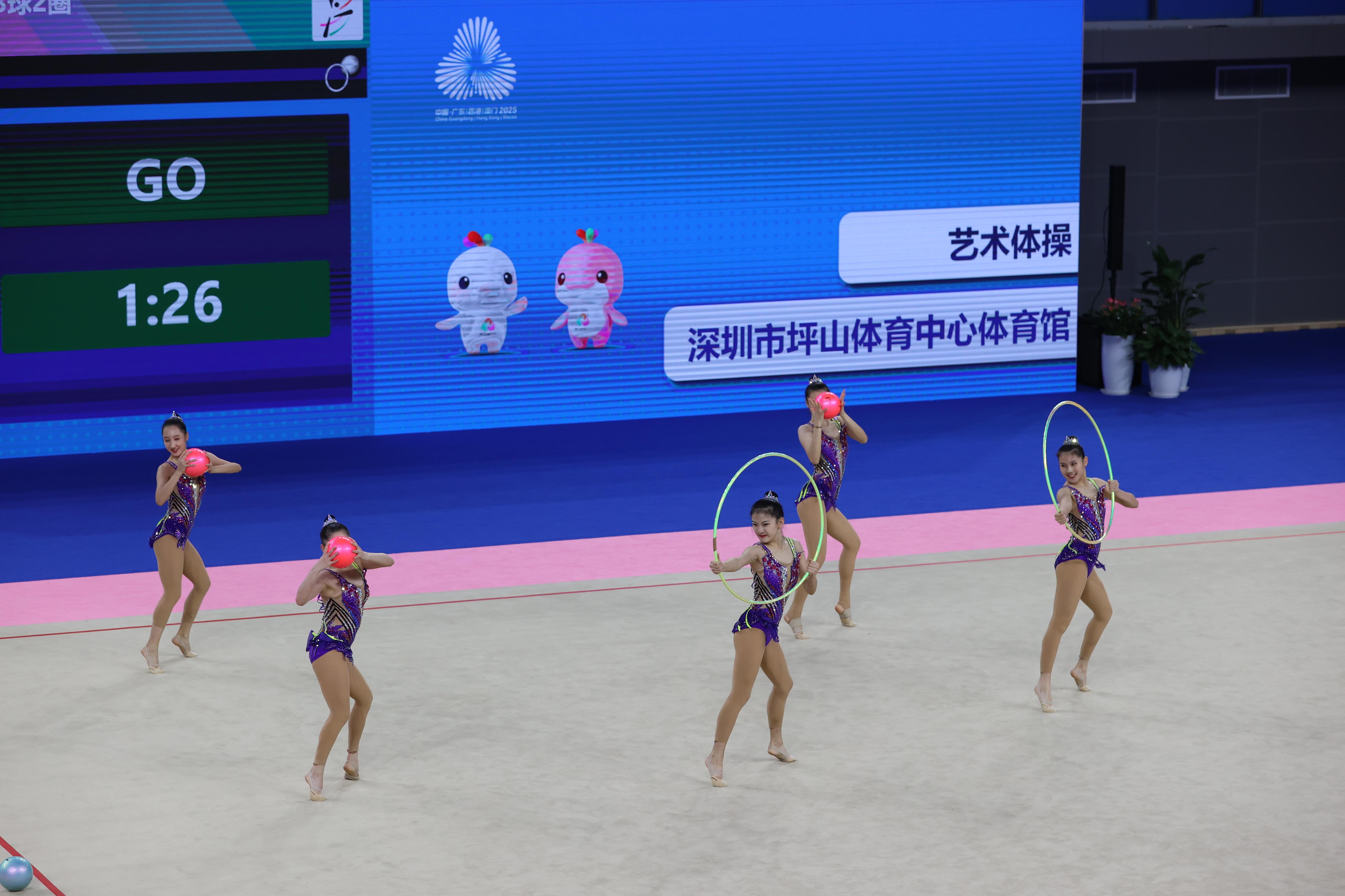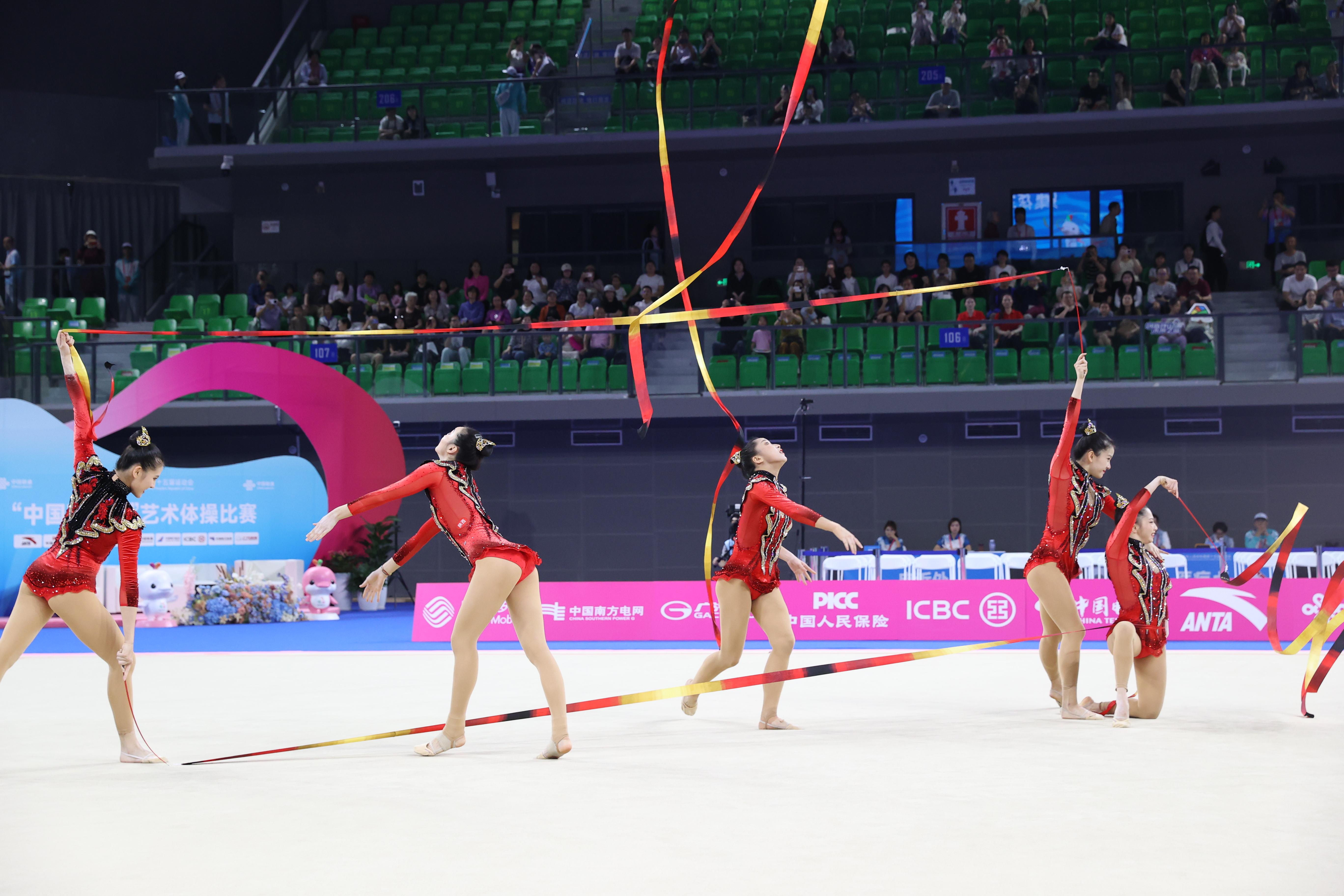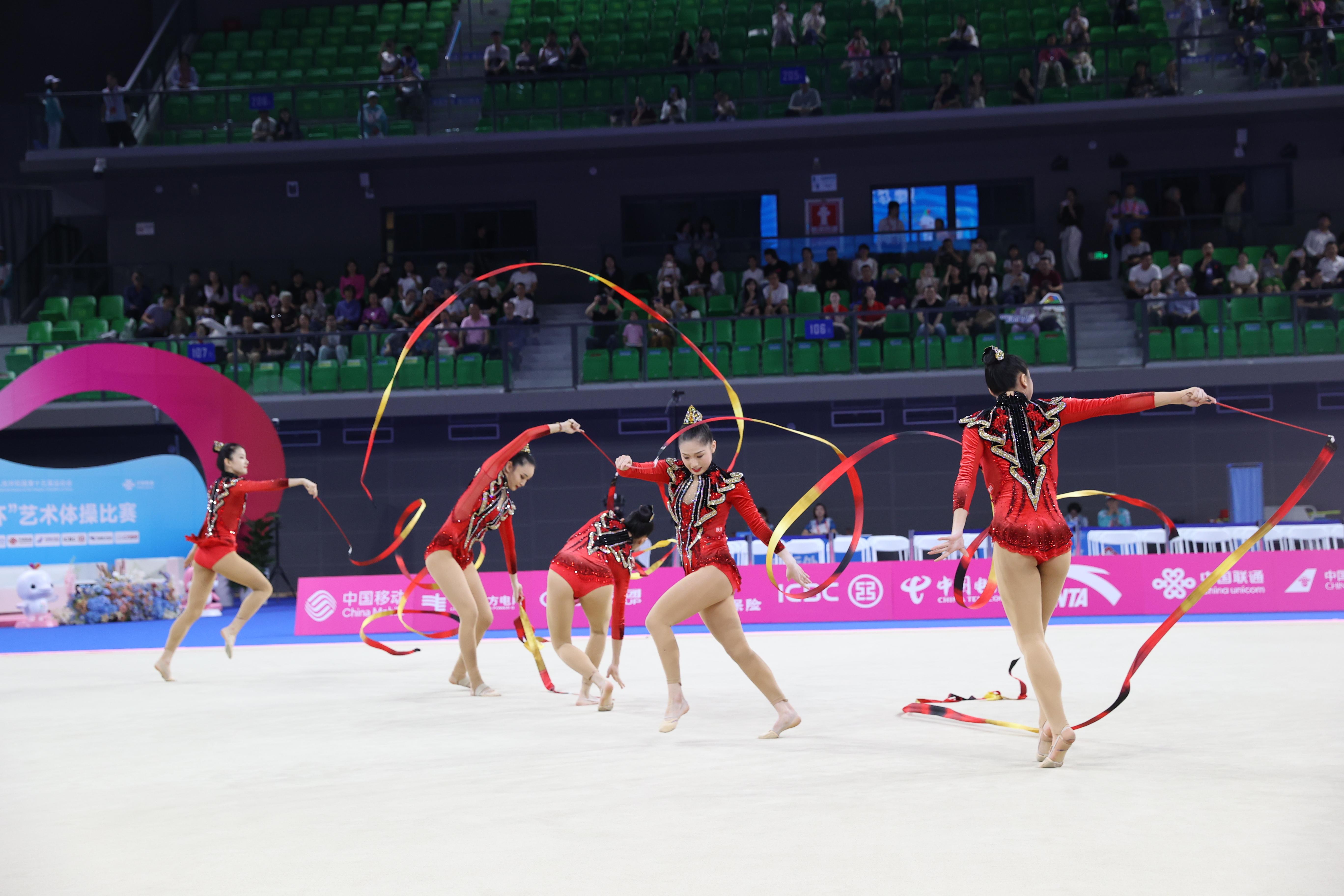 本届全运会艺术体操集体全能赛事采用“预赛+决赛”两阶段赛制,竞赛内容聚焦“5带”“3球2圈”两个核心单项,总成绩由两个单项得分累加计算得出。赛事规则明确,预赛排名前八的队伍方可晋级决赛,最终名次则依据“预赛成绩+决赛成绩”的总和确定,层层筛选与综合考评,充分保障了赛事的专业性与公平性。