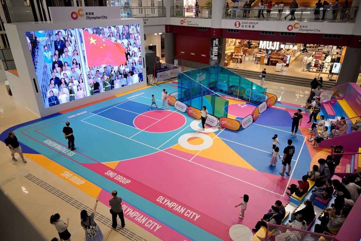11月9日,第十五届全国运动会开幕式在广东奥林匹克体育中心举行,这是香港市民在一家商场内观看直播。新华社发(卢炳辉 摄) ——同心圆之“同”,是血脉同根,是三地同频,更是万众同心共筑中国梦的不竭动力。