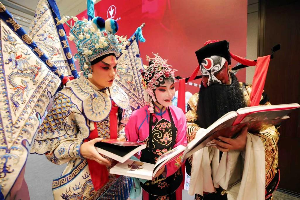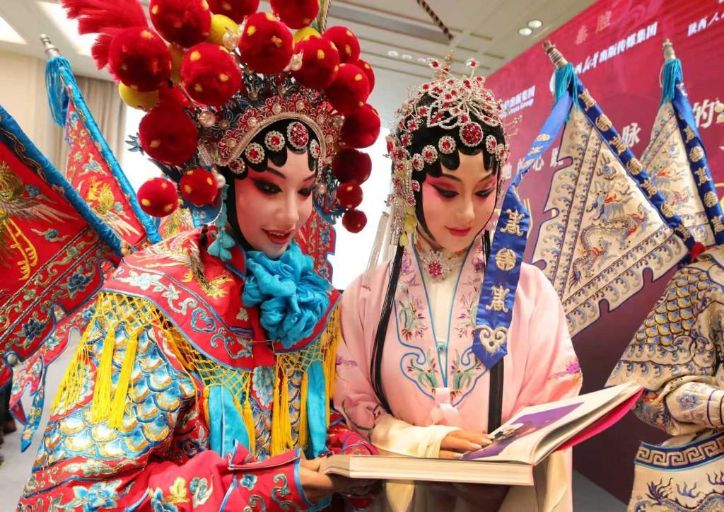 现场,来自秦腔各行当的演员们身着精美戏服登台,生旦净丑的鲜明扮相与新书相映成趣,尽显秦腔艺术的独特魅力。发布会场外的秦腔展台同样人气爆棚,吸引众多观众驻足观赏,不少外国友人主动与青年表演艺术家合影留念,成为秦腔文化跨越国界、连接中外的生动写照。