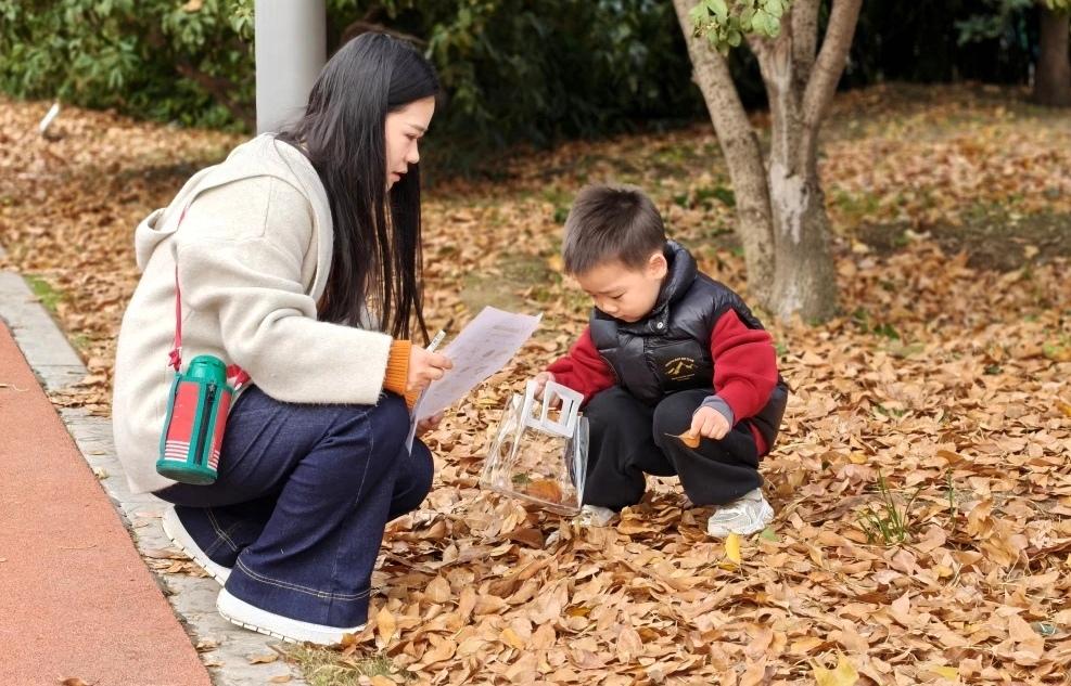 探索自然环节,宝贝们手持观察表,化身小小探险家,与爸妈漫步寻踪,一同解锁大自然的初冬密码,感受季节更替的奇妙。