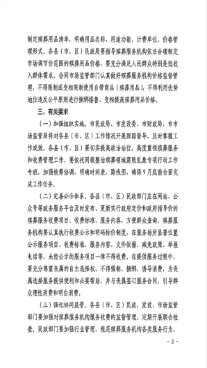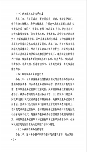 三秦都市报-三秦网讯(记者 和平 张方圆)记者日前从陕西省民政厅(以下简称省民政厅)获悉,为进一步规范殡葬服务标准和收费行为,保障群众基本殡葬服务需求,着力解决殡仪馆服务项目内涵不统一、乱收费等问题,自今年7月在安康市汉滨区、榆林市榆阳区、咸阳市三原县等3家殡仪馆开展试点推行清单化收费管理工作以来,先后制定出台了《基本殡葬服务参考清单》《延伸殡葬服务参考清单》《特需殡葬服务建议清单》《殡葬基本用品建议清单》等四张清单,作为试点地区制定本地清单的基本依据。通过明确服务内涵将接尸袋、卫生纸板等殡葬用品纳入遗体接运和火化,实行政府定价管理,将守灵厅租赁纳入政府指导价管理,得到了丧属群众的充分认可。