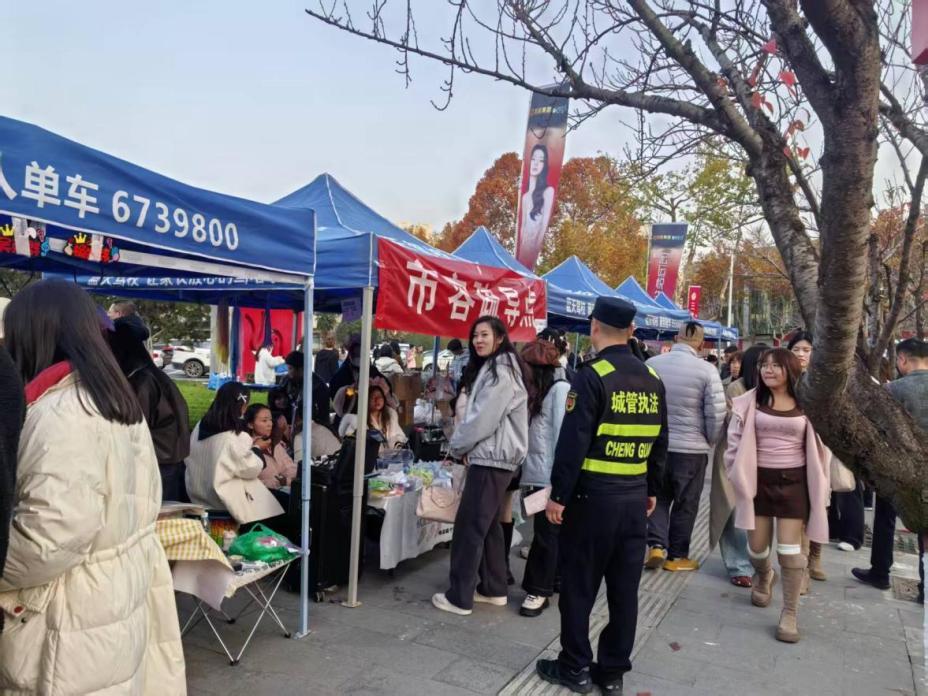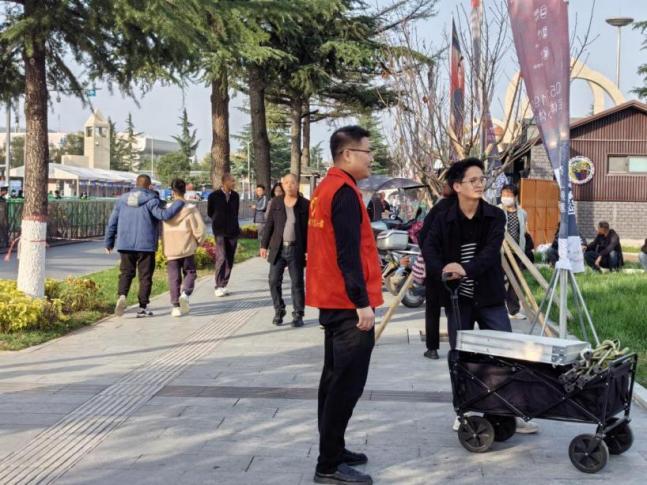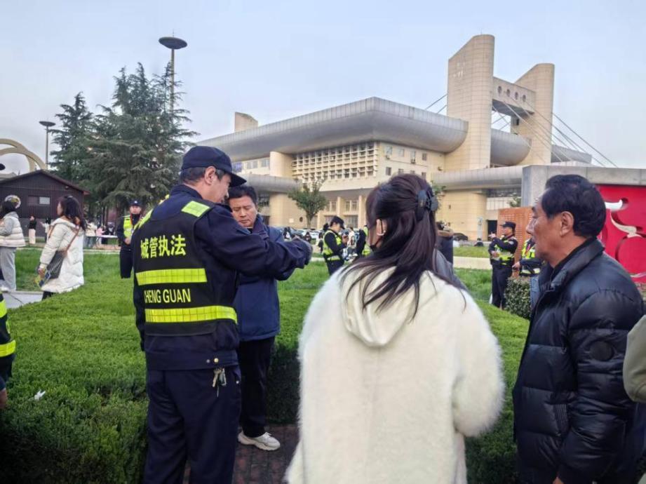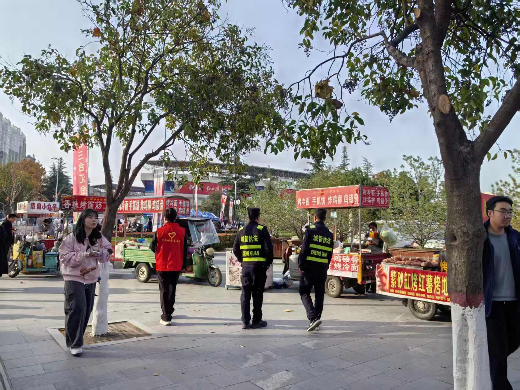 演出当天,渭滨大队全体人员取消休假,提前5小时到岗,在体育馆周边人行道设置市容疏导点,在不影响通行、不占压盲道的前提下,统一搭设帐篷,对5家企业、10余个流动摊点进行规范设置,构筑起全方位的现场保障网络;在场馆出入口等重点区域,执法队员采取定点值守与动态巡逻相结合的方式,耐心引导流动摊贩到市容疏导点进行售卖,规范经营秩序,并督促商家及时做好垃圾与油污清理,确保环境整洁有序。同时,在体育场东门两侧安排城管志愿者,对网红主播进行温馨劝导,并合理设置围挡,规范流动摊点无序摆放行为,确保行人有序通行。