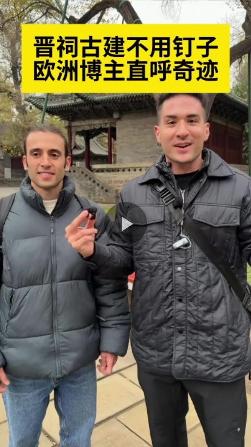 When Italian and German content creators visited Shanxi's Jinci Temple during the 2025 "A Date with China" tour, they were stunned to find its ancient structures have stood for over a millennium without a single nail! This traditional carpentry, different from European techniques, left the bloggers in awe, hailing it as "absolutely impressive" and "a true marvel."