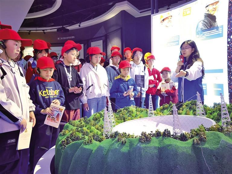 在“中国天眼”的500米口径球面射电望远镜模型前,参观者好奇地问,学校为“中国天眼”作出过哪些贡献?