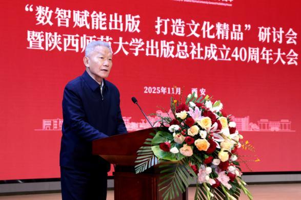 三秦都市报-秦闻讯(记者 夏明勤)11月8日,“数智赋能出版 打造文化精品”研讨会暨陕西师范大学出版总社成立40周年大会在陕西师范大学举行。来自主管部门、行业协会、兄弟出版社、合作机构的领导嘉宾与总社离退休老领导老同志及全体员工齐聚一堂,共贺陕西师大出版总社40华诞,共话出版业高质量发展。开幕式由陕西师范大学党委副书记卢胜利主持。