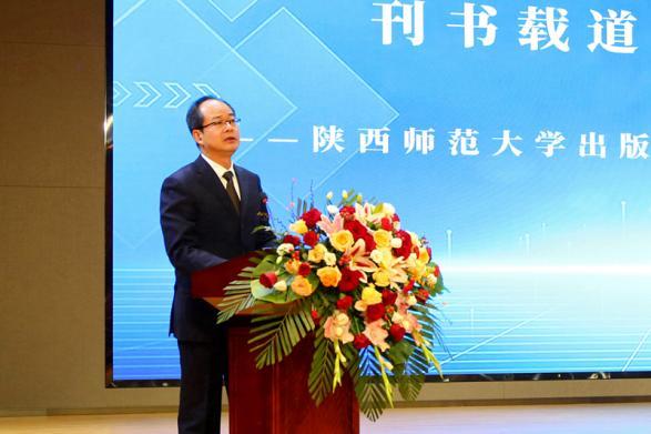 陕西师范大学校长游旭群致辞。他指出学校出版总社40年风雨兼程的成长史,是一部与改革开放同频共振的奋斗史,是一部服务国家科教兴国与教育强国、文化传承创新与文化强国建设的奉献史,也是一部与学校休戚与共、相得益彰的发展史。希望出版总社以40年社庆为契机,在坚守中创新,在融合中发展,更好服务文化强国、教育强国建设。