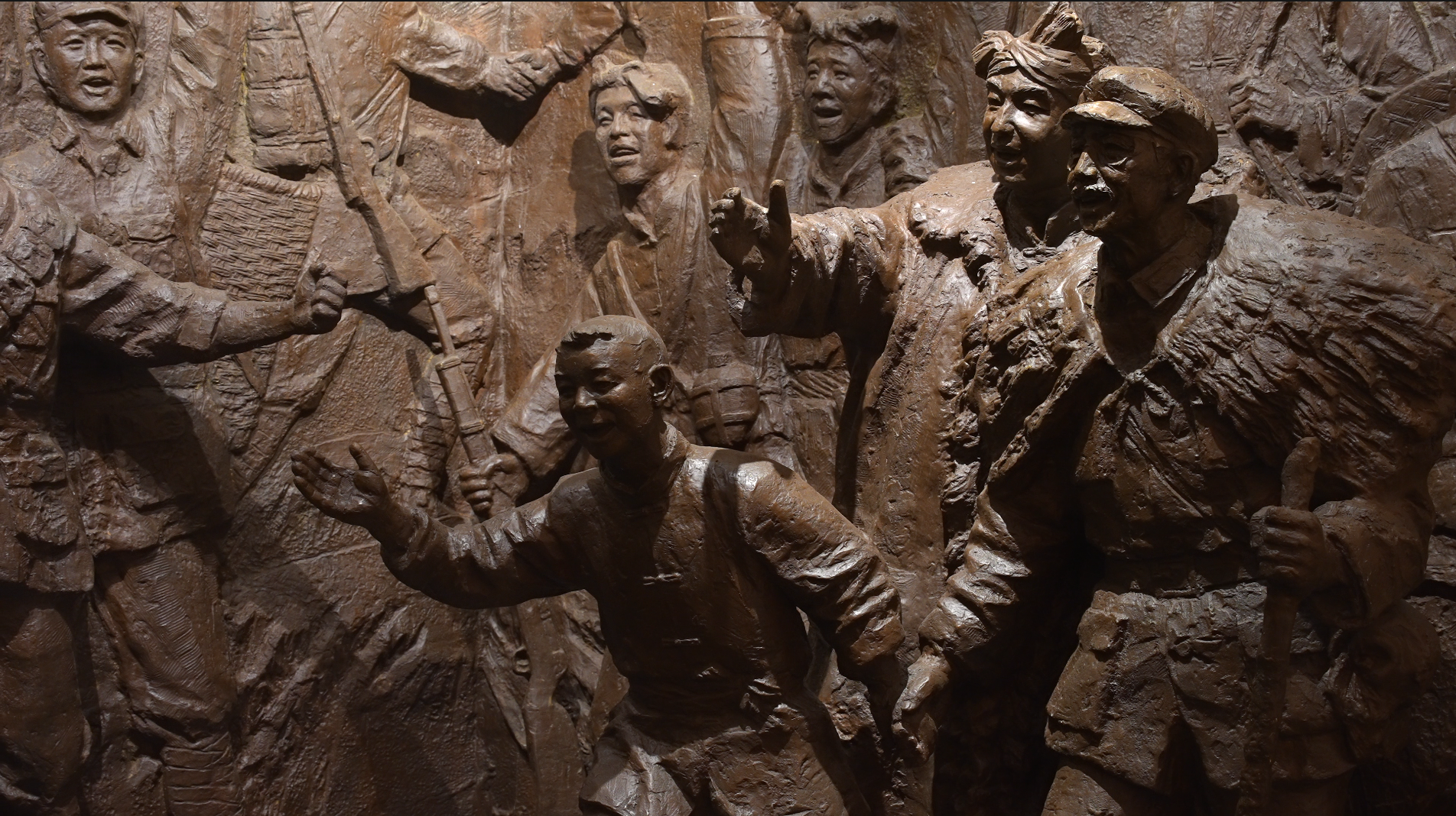 大家看这口缸,原件是国家三级文物“红军锅”。这是当年红军赔了两块银元的“天价锅”。中央红军到达吴起镇时,做饭没有锅,就向当地村民借了这口缸来做饭。红军的食物是难熟的黑豆、荞麦,火一大,饭没煮熟,缸却烧裂了几道口子。这只是长征路上无数艰难险阻的一个缩影。“苦不苦,想想长征两万五。累不累,想想革命老前辈。”苦难铸就辉煌,经过饿其体肤,苦其心志,前辈们接住了天降大任。他们不仅克服了生存困难,而且升华了思想和修养,使这山沟里不仅有马克思主义,而且有文采风骚。长征精神的底色就是不怕苦、不畏难,毛主席《七律·长征》第一句就是“红军不怕远征难”,怕苦就会当逃兵,不怕苦才能踏尽坎坷,才能感受万水千山只等闲。这个精神在人民军队得到了很好的传承。不久前的阅兵,激励战士们的口号仍然是从这里延伸出来的:“苦不苦,想想民族屈辱!累不累,想想抗战先辈!”