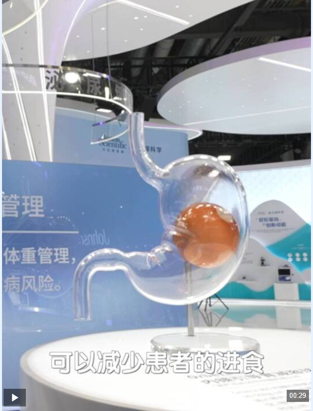 相聚“四叶草”,共赏“新奇特”。进博会好物不胜枚举,不仅让人大开眼界,更打开了通向美好的想象边界。比如,一款不打针、不吃药的减重利器,就深受大家欢迎。据介绍,这种产品通过内窥镜将球囊送入胃内,通过占据部分胃容积,减少进食量,延迟胃排空,增强饱腹感。