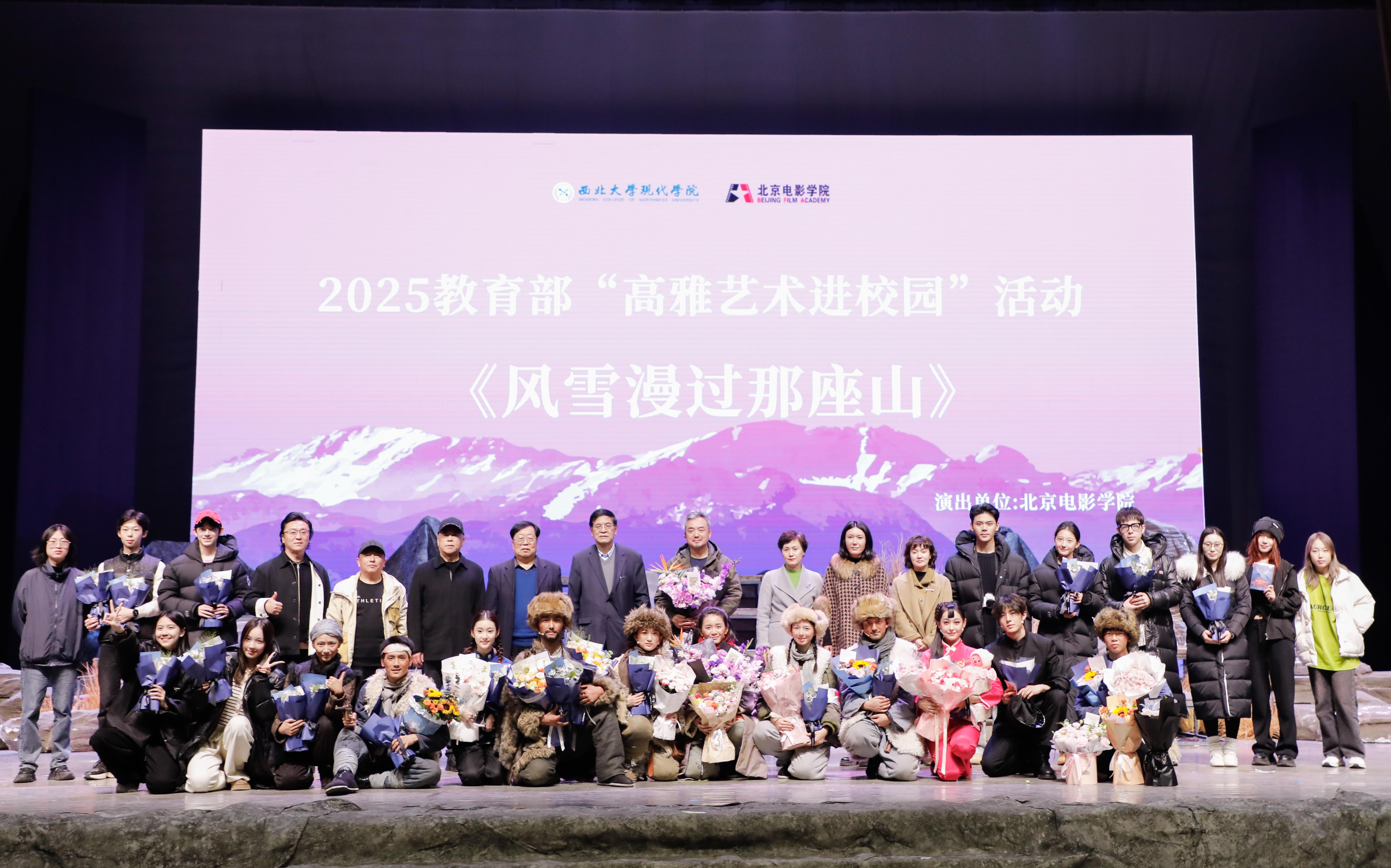 演出结束后,《风雪漫过那座山》的导演向能先生代表北京电影学院对西北大学现代学院衷心感谢,他期待未来两校之间继续深化合作、共育文艺人才。西北大学现代学院电影学院院长竹子代表现代学院祝贺演出圆满成功。他表示,此次演出既是高雅艺术的校园传播,更是校际情谊的生动见证,此次西安的多所高校以很高的热情参与进来,使得两校的活动升级为两地的活动,使这次演出的效果显著增益。期盼以此次活动为契机,推动双方交流合作走向更深层次、更宽领域。