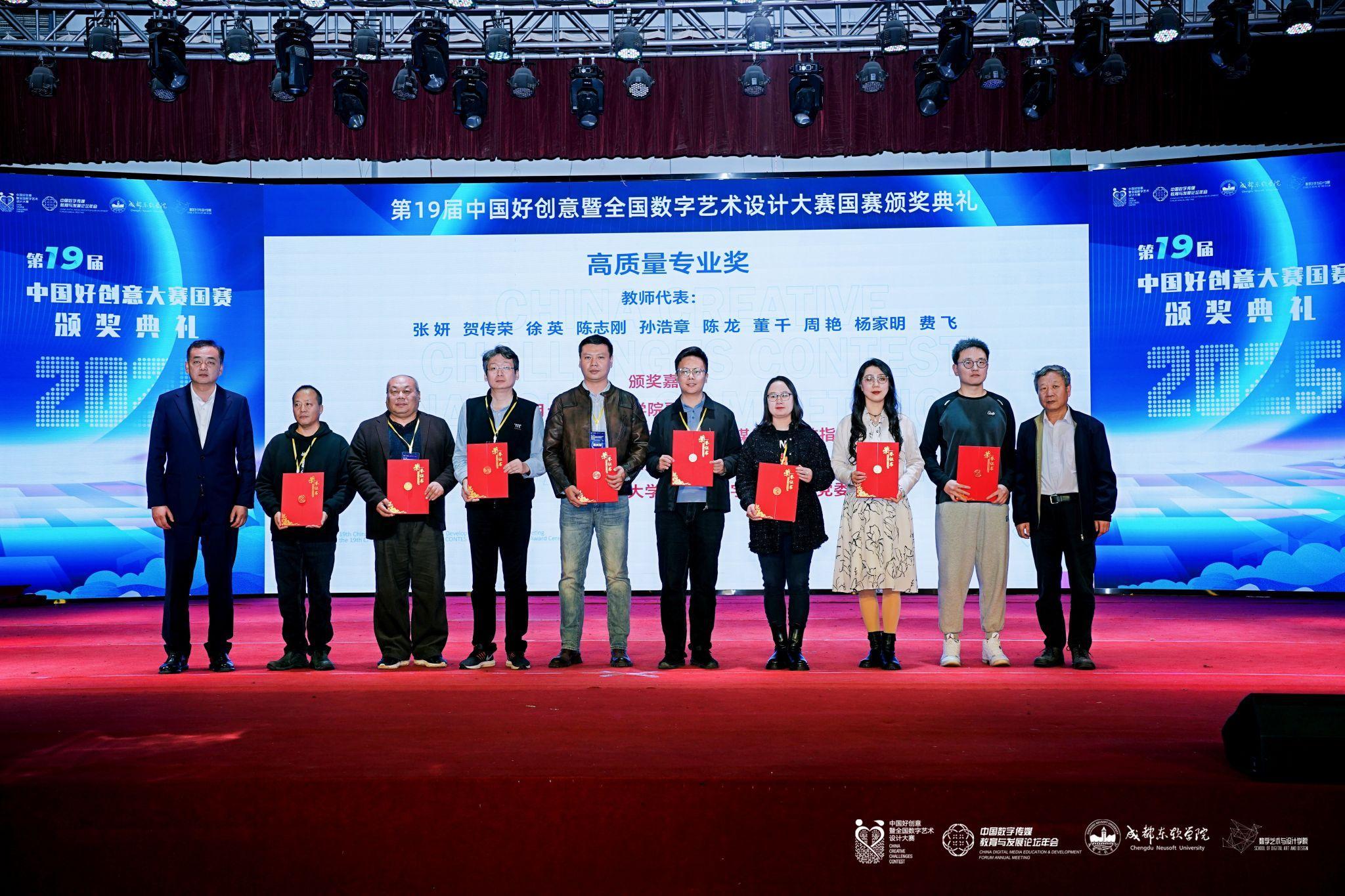 在激烈角逐中,西安翻译学院师生凭借过硬的专业素养与创新能力脱颖而出:艺术与设计学院获评“高质量专业奖”,标志着西安翻译学院的数字媒体艺术育人模式得到全国数字传媒教育领域的高度认可,为学校深化教学改革、提升人才培养质量注入了强劲动力。另外,西安翻译学院师生斩获国家级奖项38项(其中教师组5项、学生组33项),获奖数量与质量在同类院校中表现突出。艺术与设计学院产品设计系主任张军荣获“特殊贡献奖”;凤凰数智传媒产业学院赵艳艳、吴楠等教师获评“优秀指导教师奖”。
