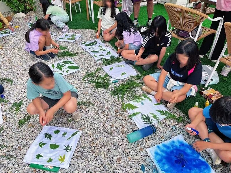 山觅客栈研学团队开展树叶扎染研学实践课程