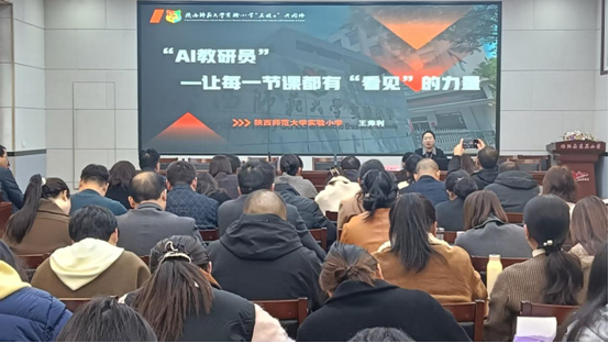 在集中项目培训环节,陕西师范大学实验小学副校长王萍利以《“AI教研员”让每一节课都有“看见”的力量》为题,聚焦“AI教研员实现‘可见的课堂’;AI 教研员实现‘可见的教学’;AI教研员实现‘可见的成长’”三个方面的内容,采用视频图解和生动的讲述,诠释了人工智能赋能教师成长的意义和策略,使参与培训的教师颇受教益。