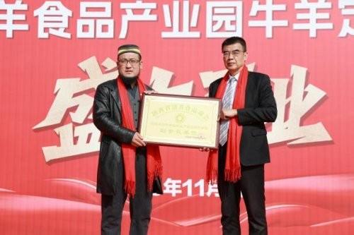 在与会嘉宾的共同见证下,陕西省相关领导与陕西美羚羊食品科技产业园有限公司董事长王宝印共同为美羚羊食品产业园牛羊定点屠宰厂揭牌,并为受聘专家颁发聘书。