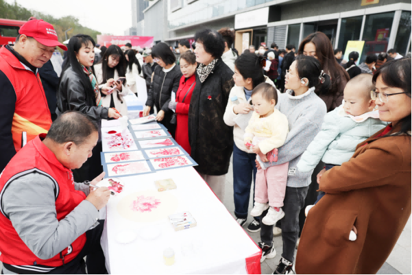 非遗剪纸·火花记忆展位前,十二生肖等传统形象与哪吒、敖丙等热门IP形象的剪纸吸引了许多居民围观。西安剪纸非遗传承人王艳介绍,这些作品在授课时可以针对不同群体,让老年人、年轻人都能对剪纸感兴趣,让他们剪出自己心仪的剪纸,这样才能够更好地将这门技艺传承下去。同时,国画爱好者王建锋在展台前现场作画,引得众人阵阵掌声。