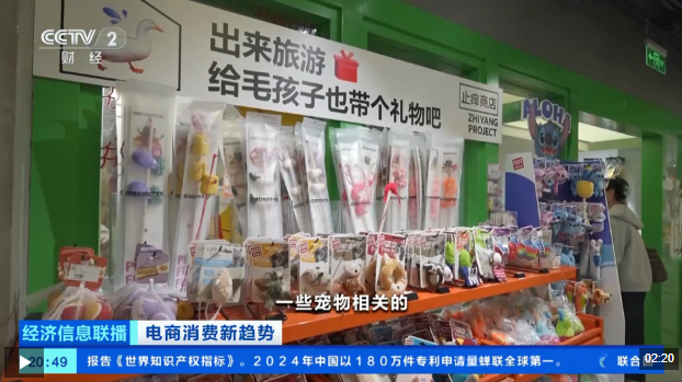 上海黄浦区某文创门店店长 班朝阳:宠物相关的,包括比较有创意性的毛绒挂件,还有能直击我们内心深处的文字梗相关的东西,含有祝福意义的,是目前比较受欢迎的产品。
