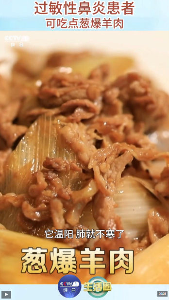 葱爆羊肉:御寒祛寒 预防感冒。