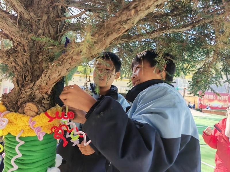 “我们先当设计师,画好编织图案,又当数学家,量树干、算毛线。大家一起动手,给校园里的大树都穿上了五彩缤纷的‘毛衣’。我们还给每棵树写了小诗,做了身份证,挂了许愿卡,让每棵树都有了属于自己的故事。”稍木则沟小学三年级学生张艺萱说。