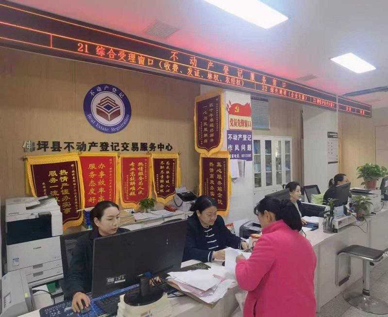 11月10日一大早,在佛坪县政务服务中心办证大厅,“一窗受理、信息共享、限时办结”“高效办成一件事”的宣传标语格外醒目。不动产登记中心主任王鹏正在逐一审核群众提交的办证资料,还不时地拨打第三方公司的电话询问情况,工作略显忙碌且规范有序。