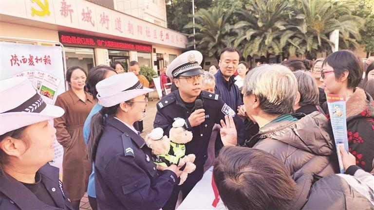 “我们希望通过讲解交通安全知识,宣讲交通安全的法律法规,给大家进行科普;同时,我们还设置了有奖问答的互动环节,提高大家的参与度,从而提升大家的安全意识”。安康市公安局交管支队高速大队法宣科科长刘东煜说。这次他们带着交通安全知识,为居民们送上了一场“家门口的安全课”。活动现场,工作人员用“平安熊”作为交通安全宣传的互动礼品,通过知识问答的方式,鼓励居民学习交规。