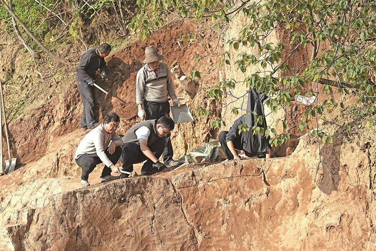 11月上旬,西北大学文化遗产学院教授梁云(前排左一)在魏家崖遗址进行考古发掘(资料照片)。受访者供图