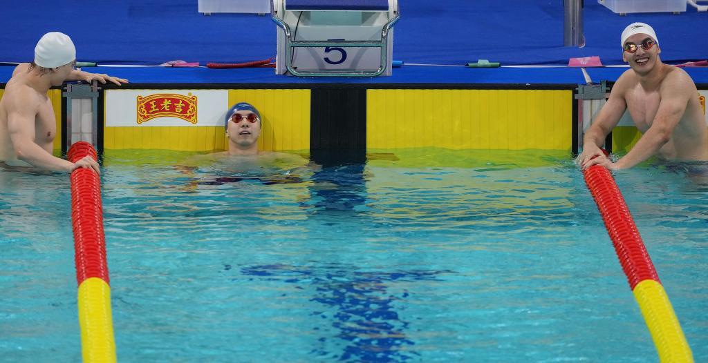 当晚的决赛,胜负只在毫厘之间,率先触壁的却不是覃海洋。郑英昊以26秒97的成绩获得金牌,闫子贝和覃海洋分列二、三位。