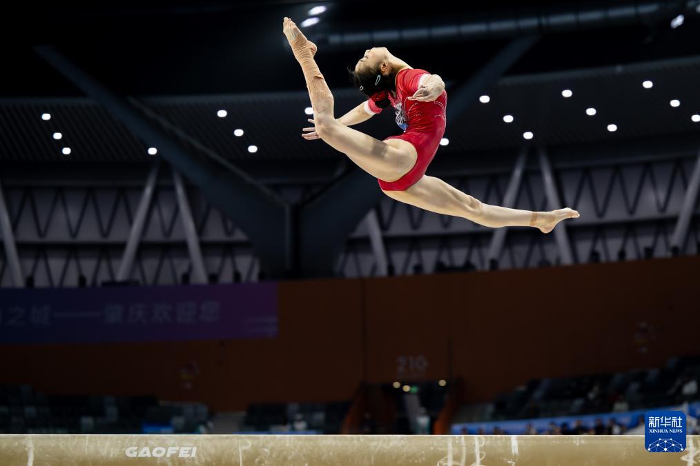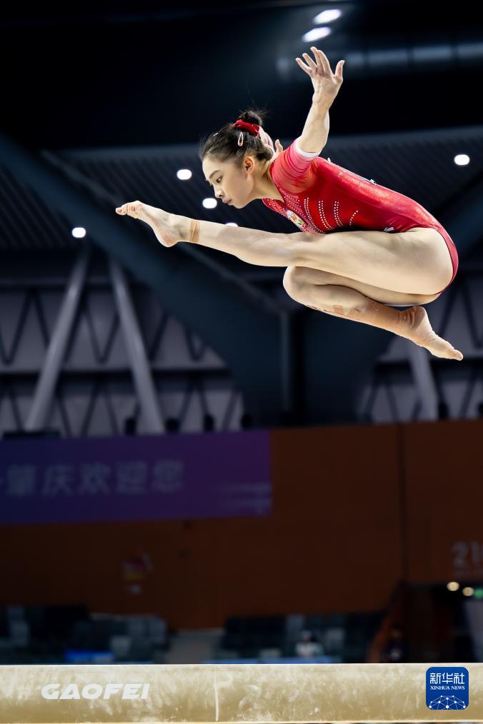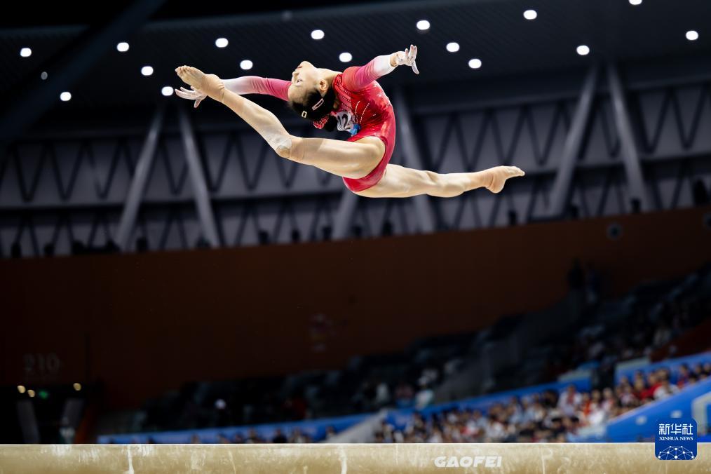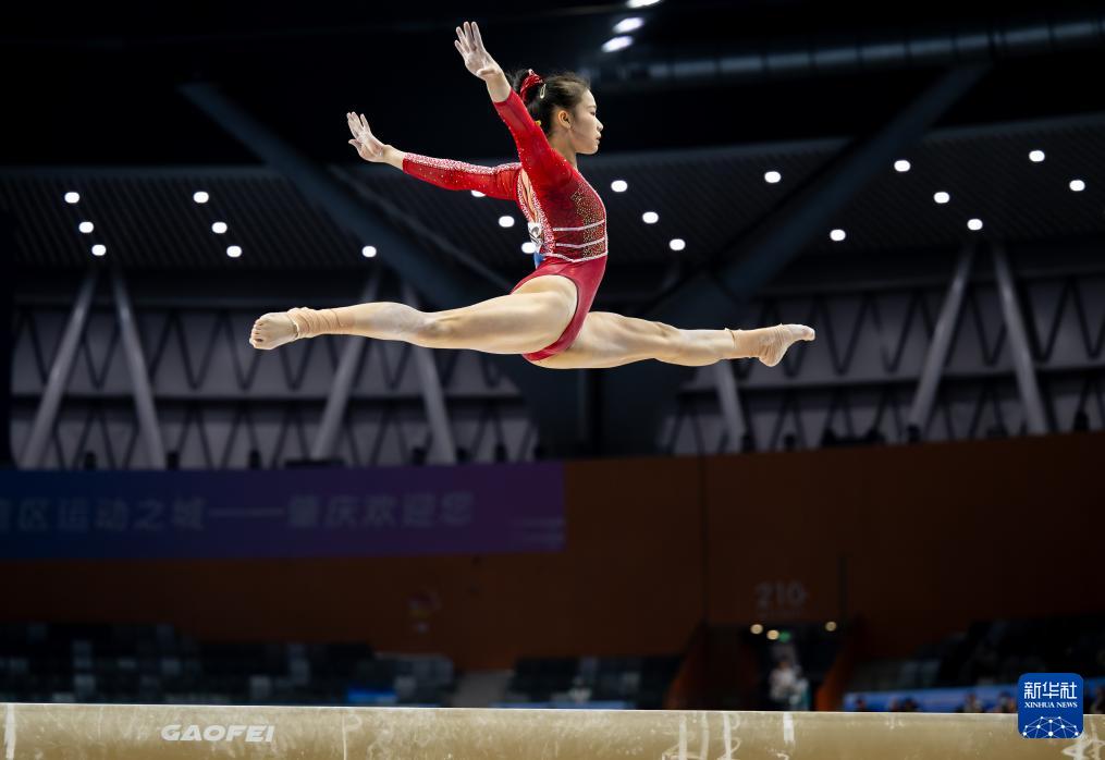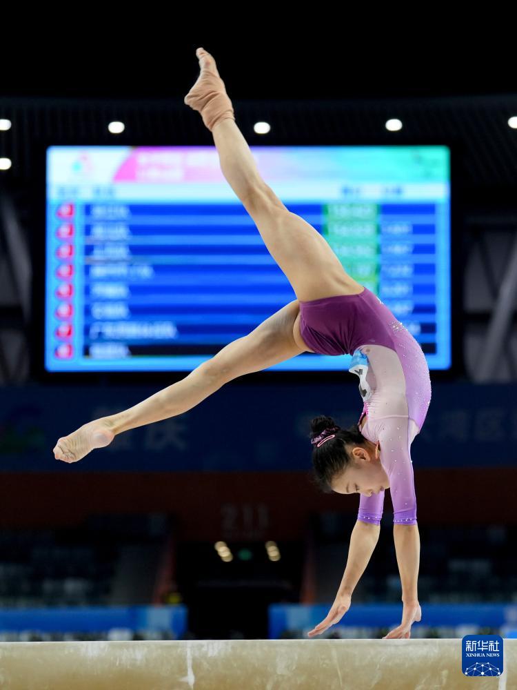 11月13日,湖北队选手龙子蓉在平衡木比赛中。