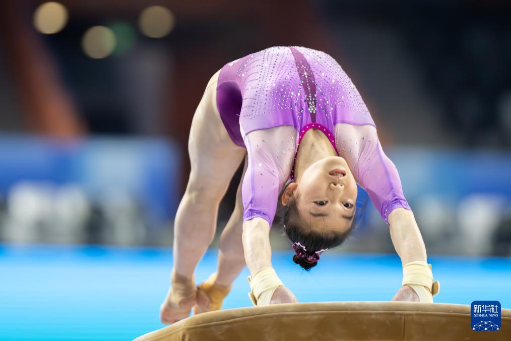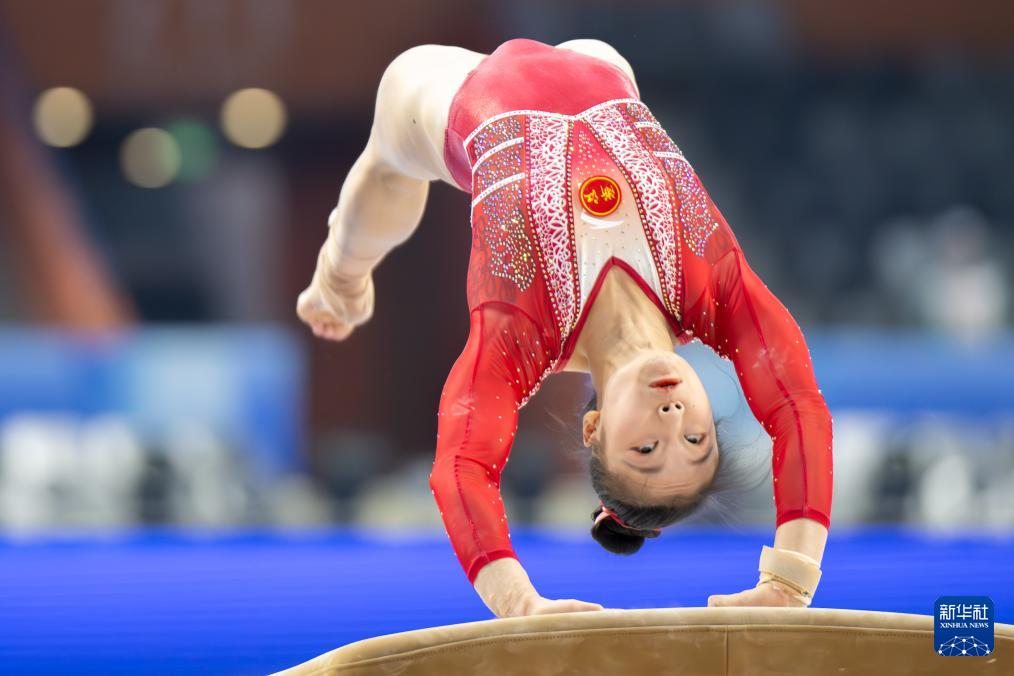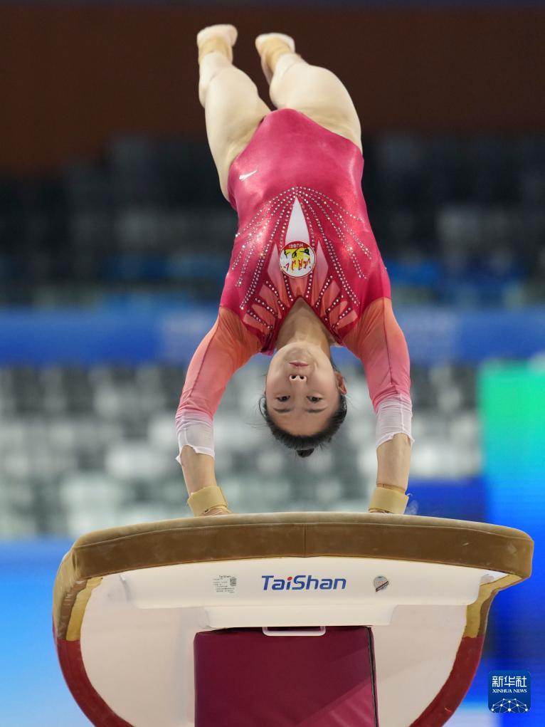 11月13日,浙江队选手张清颖在跳马比赛中。